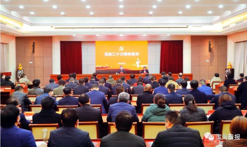 報告會上,勾鳳誠緊扣黨的二十大報告原文,圍繞黨的二十大的主題和主要成果、過去五年工作和新時代十年偉大變革、馬克思主義中國化時代化、中國式現(xiàn)代化、全面建設社會主義現(xiàn)代化國家的目標任務、堅持黨的全面領導和全面從嚴治黨、應對風險挑戰(zhàn)七個方面,對黨的二十大報告作了全面系統(tǒng)深入的宣講解讀。他指出,要堅持把學習宣傳貫徹黨的二十大精神作為當前和今后一段時期的首要政治任務、長期戰(zhàn)略任務,在全面學習、全面把握、全面落實上下功夫,完整準確全面貫徹新發(fā)展理念,做到學思用貫通、知信行統(tǒng)一,迅速把學習宣傳貫徹黨的二十大精神的熱情和干勁轉化為做好各項工作的強大動力,確保黨的二十大精神在濱海落地生根、取得實效。要緊扣全市發(fā)展大局,堅決扛起加快鹽城北部隆起的重大使命,把握戰(zhàn)略機遇,突破重大項目,全面擴大開放,構筑產(chǎn)業(yè)高地,全力打造沿海高質量發(fā)展新增長極,為鹽城建設綠色低碳發(fā)展示范區(qū)、勇當沿海地區(qū)高質量發(fā)展排頭兵作出新的更大貢獻。
